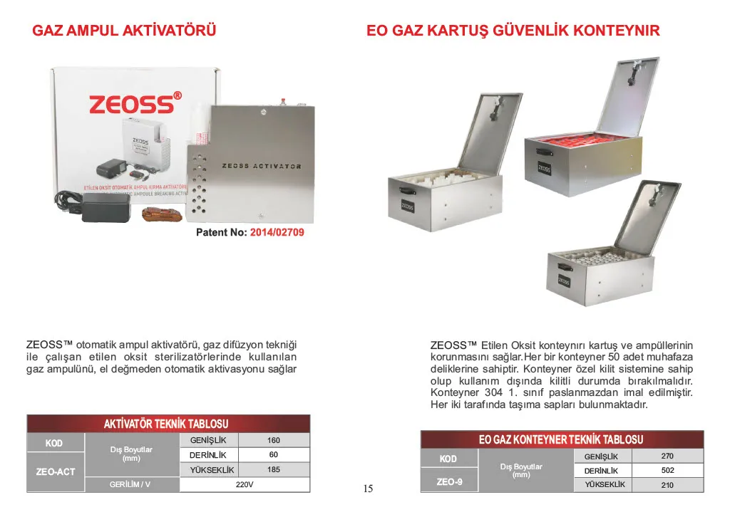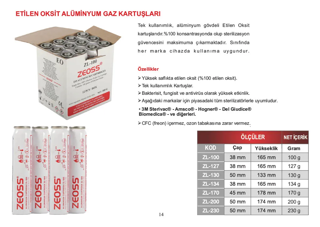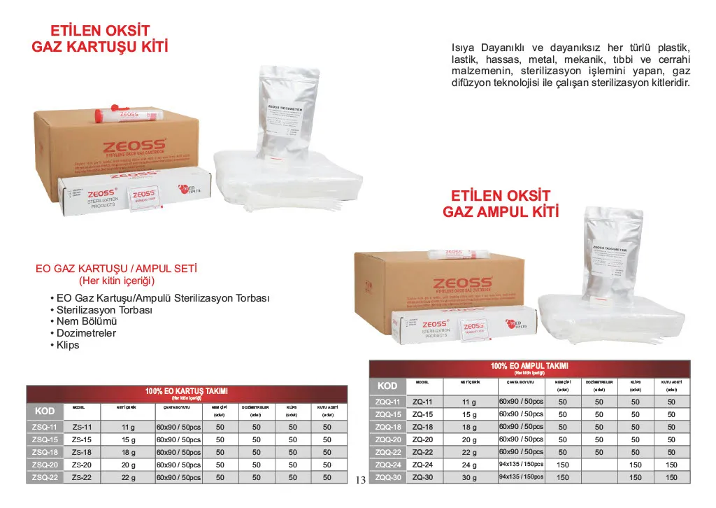 Etilen Oksit Gaz Kartuş / Ampul Kitler
